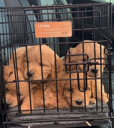 I like to send puppies home right before a weekend, so that they can bond with you and get started on potty training in your home. If you are able to take a few days off from work that is fantastic. A puppy shouldn’t be left in a crate all day. They have small bladders and need to be taken out to use the bathroom. If you are going to be gone for longer than 3-5 hours, then have your puppy in a play pen with the litter box and alfalfa pellets for them to be able to go to the bathroom while you are gone.